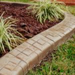 Можно делать бордюр из остатков при строительстве дома в виде бетонных блоков или кирпича. Их под углом погружают в землю, а крупные зазоры заполняют мелкой галькой. Можно выложить стандартную кладку на цементном растворе.