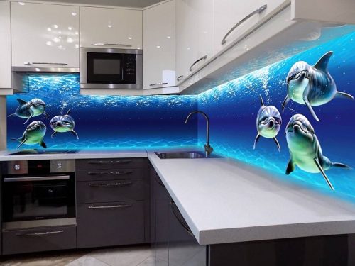 Таким образом, вы сможете оценить фартук для кухни из стекла в разных вариантах дизайна. Выбирайте защиту для стены над рабочей зоной и одновременно декоративный элемент вашего интерьера!