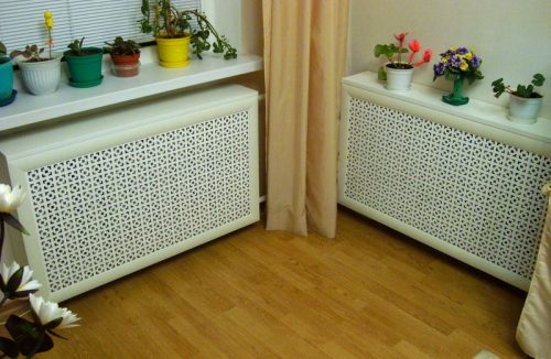 Выступающие экраны выглядят как короб с декоративными стойками. Второй вид это плоские экраны, они выглядят как рамки с внутренними решетками. В основном защитные экраны могут использоваться не только для батарей, но и для других отопительных приборов.