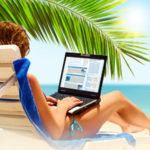 Для устройства пляжа на балконе или лоджии, достаточно разложить удобный шезлонг или обновить обычный стул полосатым сине-белым чехлом. Столик для коктейля, пальма в горшке, стеклянная ваза с песком создадут настроение отпуска.