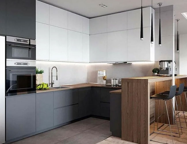 - выбирать устойчивые к влаге материалы, особенно для зон около мойки и плиты;