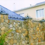 Булыжник. Камни такой породы подбирают для многих заборов. Любят этот материал. Камень разбивают кувалдой надвое, получая одну сторону плоскую, другую-выпуклую. Это довольно хлопотно, зато забор не выйдет полностью шероховатым. Если не хочется такой угрюмый забор, мрачный, есть возможность подобрать булыжник красный, коричневый или сходных оттенков. Такие ограждения вы видели часто.