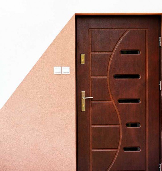 Для наружно отделки двери стальной используют обивку искусственной кожей, панели (пластиковые или МДФ), пластиковое напыление, ламинирование. Надо отметить, что наибольшим спросом пользуются объемные панели. Наружная поверхность тонких панелей обрабатывается тонким шпоном или специальной пленкой. Панели из деревянного массива проходят дальнейшую обработку – тонизируются или лакируются. Это позволяет лучше сохранить эксплуатационные свойства двери и существенно повысить ее внешний вид.