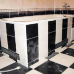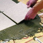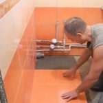 - Выравнивание пола, а также поверхности стен, потолков и прочей площадки, которая покроется сверху плиткой. Очищаем поверхность пола также от пыли и загрязнённости. Это первичный этап. Также здесь необходимо обезжирить стены и покрыть грунтовкой глубокого проникновения с антигрибковым эффектом, чтобы увеличить способность к адгезии.